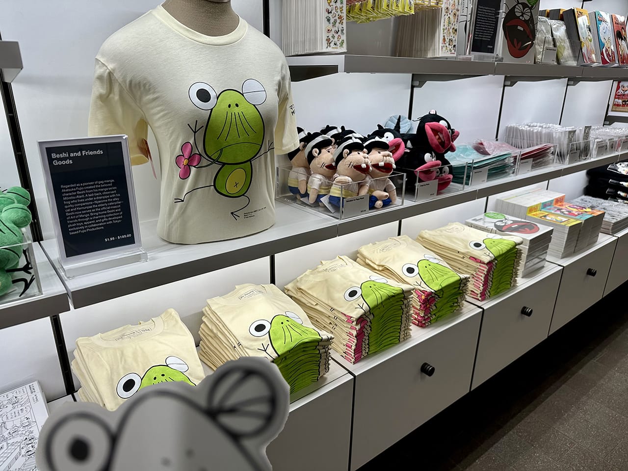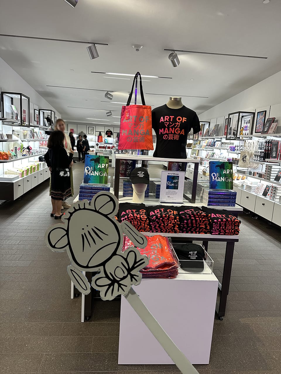「マンガの芸術展」オリジナルグッズが並ぶミュージアムショップ