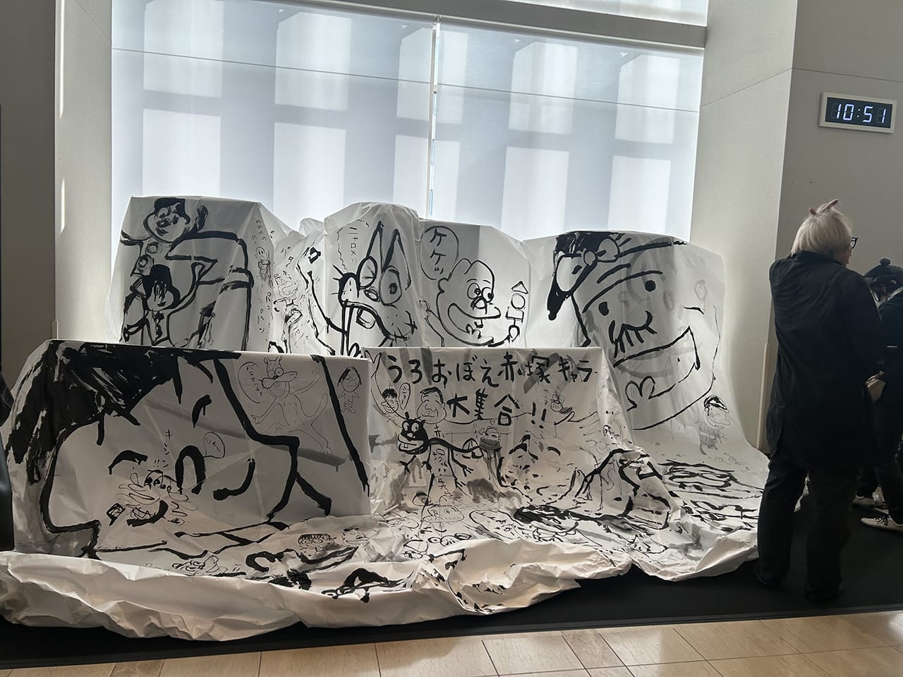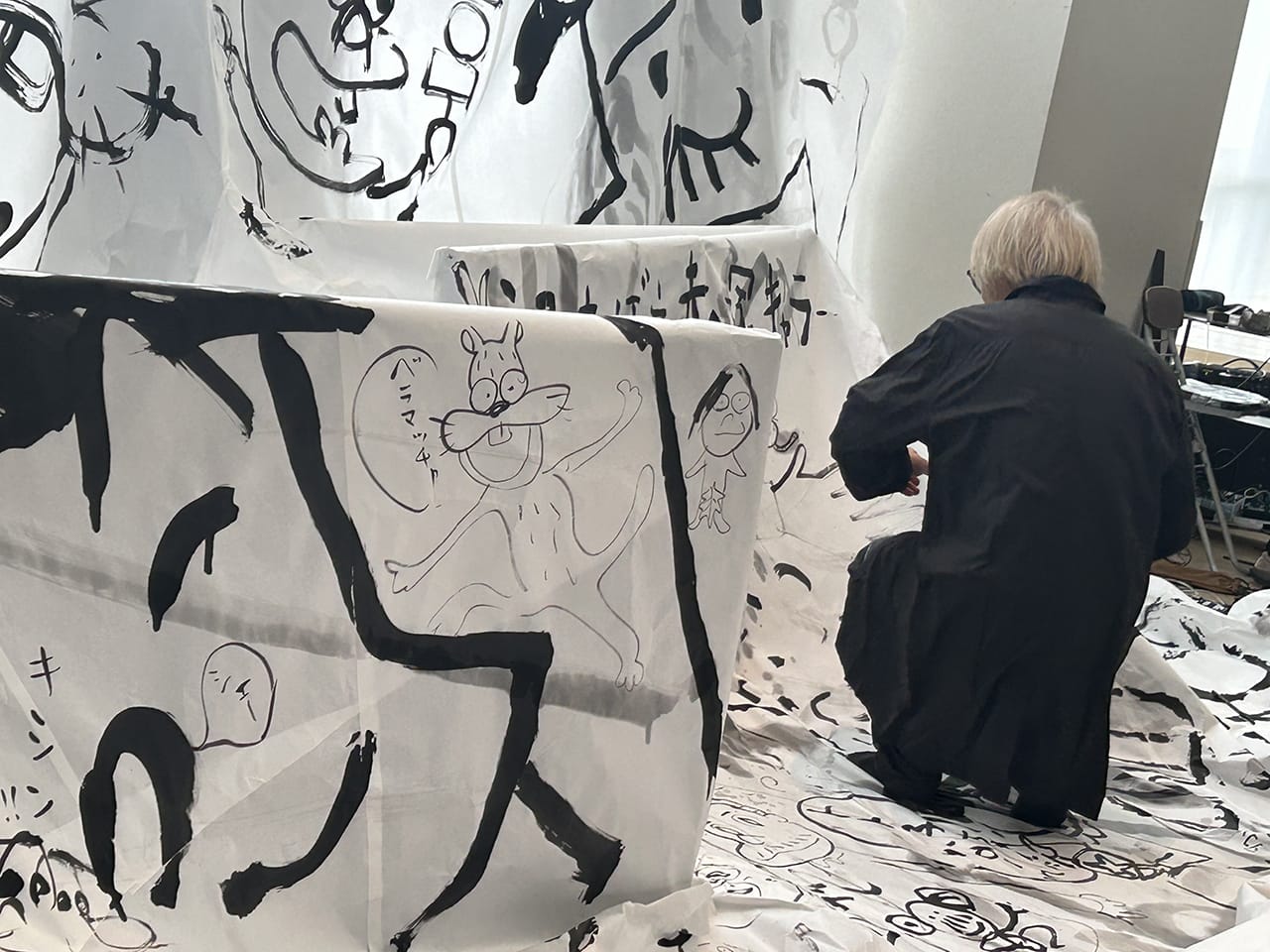 エントランスではしりあがり寿さんがすでにライブペインティング中。