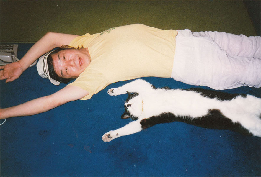 昭和54年(1979) 猫の菊千代と暮らしはじめる。バンザイのできるネコとして数々のCMで共演し、一躍人気者に。(1997年没)