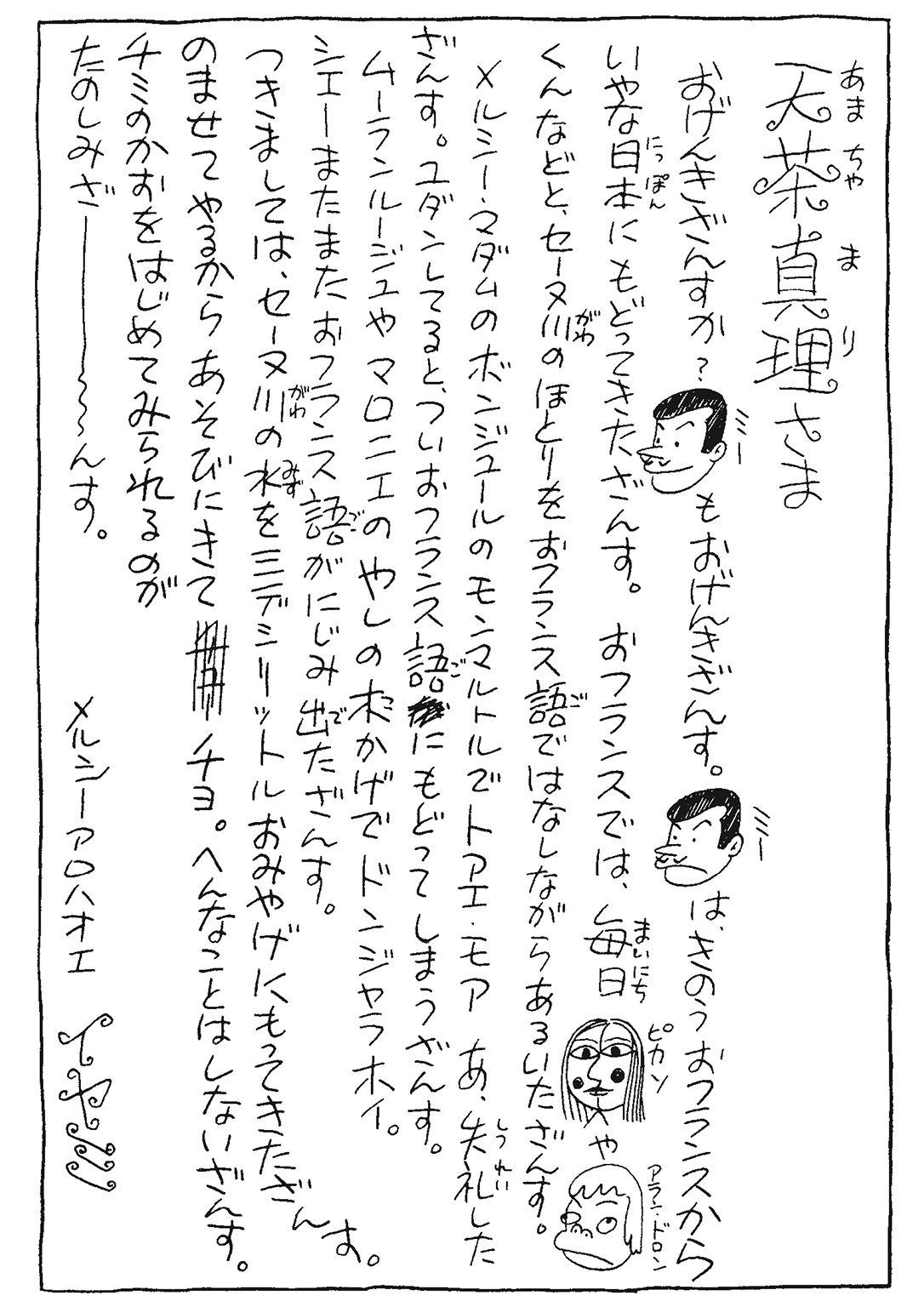 ピカソやアラン・ドロンくんとセーヌ川のほとりで語りあったと言い張っていますが、もちろんそれを見かけたものはいません。時空も言葉の壁も越えていくイヤミ、と思いきや……。
