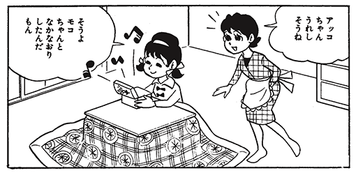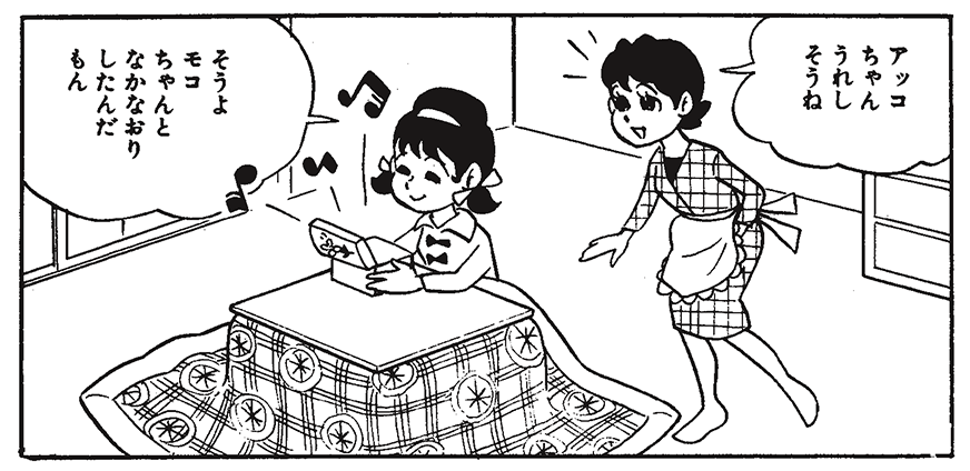 ひみつのかがみを持っていることを除けばアッコちゃんはごく平凡な女の子。テストがあるのに勉強していない、お正月の晴れ着がうれしい、親友のモコちゃんと喧嘩をして仲直りに悩むなど年相応でハツラツとした毎日を送っています。んー、友だちになりたい!
