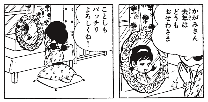 「ひみつのアッコちゃん」のまんがのなかではががみの行方については言及されていません。アニメではみんなを救うためにおおきな魔法を使ってかがみは失われてしまいます。アッコちゃんのひみつは少女時代の思い出としてうつくしいまま残っているでしょう。んーーー、かがみよ、ありがとう!