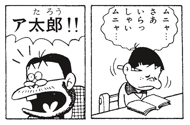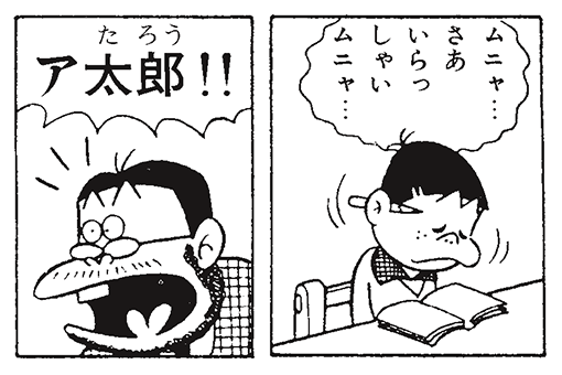こどもながらも家業の八百屋(八百×)を切り盛りするア太郎ですが、実はりっぱな小学生です。おつりの計算は得意でも勉強は苦手。学校では実力を発揮できないタイプのようです。 んーー、ア太郎は商売にむいてるんだ!