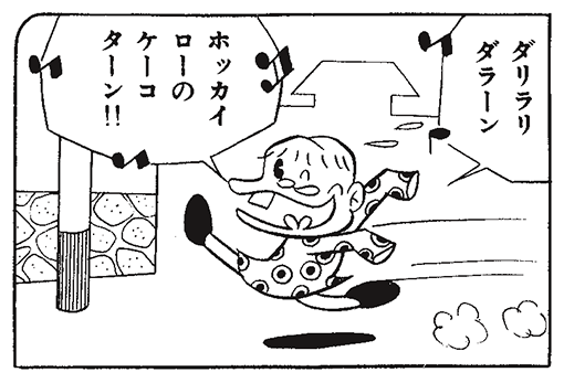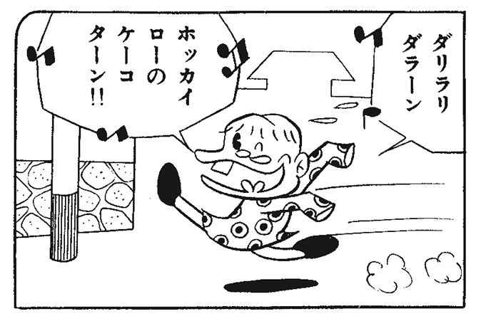 当時のアシスタントが北海道出身のケイコさんに恋をしました。それを知った赤塚センセイは、お祝い?の気持ちを込めて愛を叫ぶバカなキャラクターを描きました。んーー、そのあと二人は結婚しましたとさ。