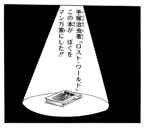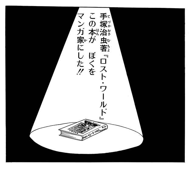 赤塚センセイは、少年時代に読んだ手塚治虫先生の「ロストワールド」(1948年/不二書房)に感激をして本格的にまんが家を目指すようになったと語っています。夢がかなってまんが家になってからも「あのまんがは、素晴らしい!」と繰り返し話すほど赤塚少年にとっては印 象深い作品だったようです。