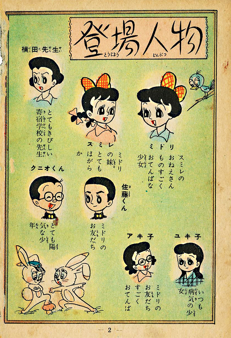 東京郊外の開業医の家に生まれたミドリとスミレの姉妹。赤塚不二夫のデビュー作は、おてんば盛りの姉のミドリが親友の死を経験したり病気になったり寄宿学校に入ったりして成長する物語。