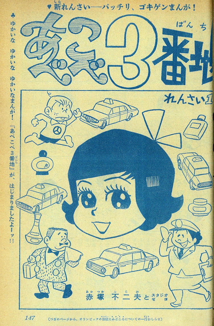 おとなりに住むサチ子とタケシ。サチ子のパパはお化粧品のセールスマン、タケシの母ちゃんは神風タクシーの運転手。どちらもシングルで子どもを育てる境遇です。あべこべに思えるような二つの家庭が支え合って暮らす家庭まんが。