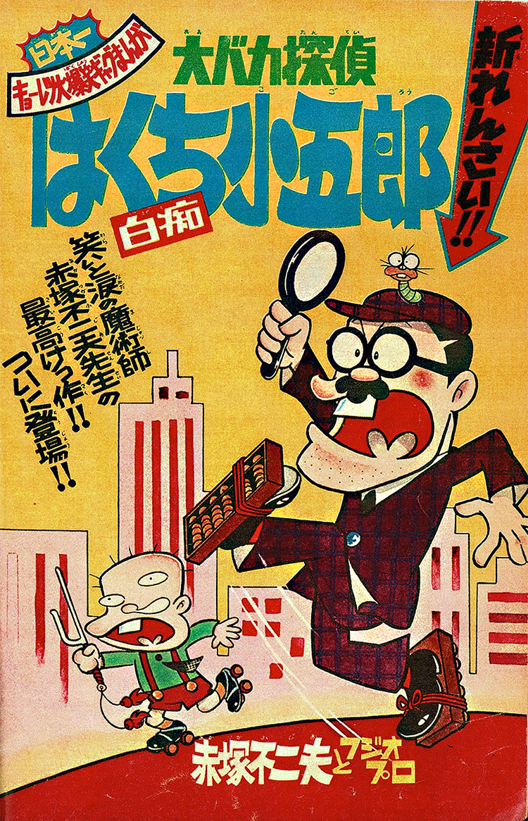 東京は中落合のラーメン屋の2階に事務所を構える「はくち探偵事務所」。父親のはくち小五郎とその息子の「小林少年」のふたりで事件を解決に導きます。依頼がないなら事件を探しに行こう! と町に出てゆく!!