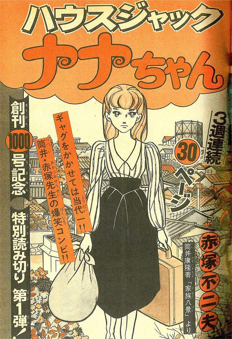 ハウスキーパーのナナちゃんはひとの心を読む超能力者。ちょっと「ヘンな家」ばかりに派遣されるナナちゃんだが、持ち前のガッツと超能力でその家の秘密やタブーを暴き解決していく。筒井康隆『家族八景』を原作に赤塚センセイが挑むエスパーまんが。