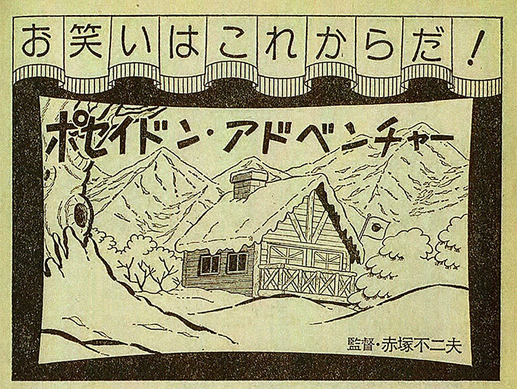 往年の名作映画になぞらえて赤塚流のギャグを散りばめ世相を切る時事まんが。「鉄道員」「俺たちに明日はない」「七年目の浮気」などなど映画狂赤塚の真骨頂。