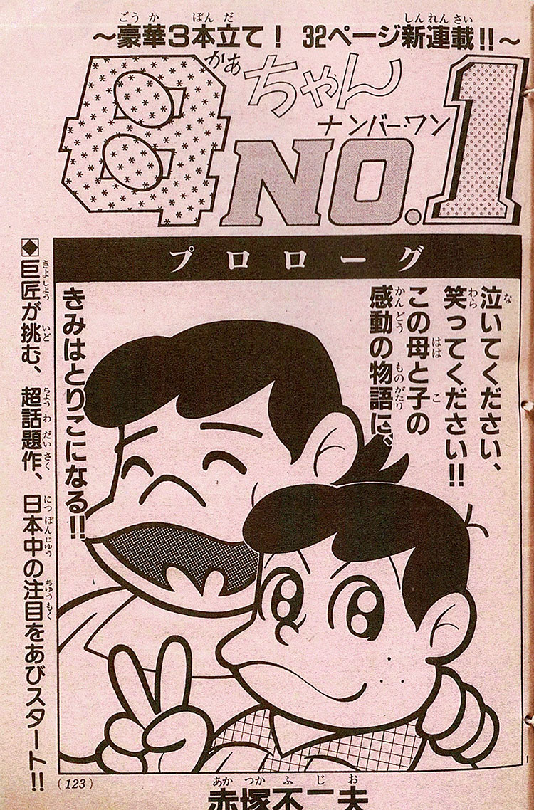1976年の同名まんがのリバイバル版。交通事故で父親を亡くしたものの奇跡的に助かったかあちゃんと息子の物語。かあちゃんはたくましくやさしく何といっても愛情深い。赤塚流母親讃歌。