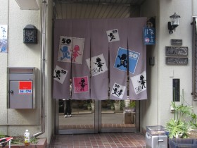 『おそ松くん』が友禅染めの「のれん」となってフジオプロの入口を飾ります。
