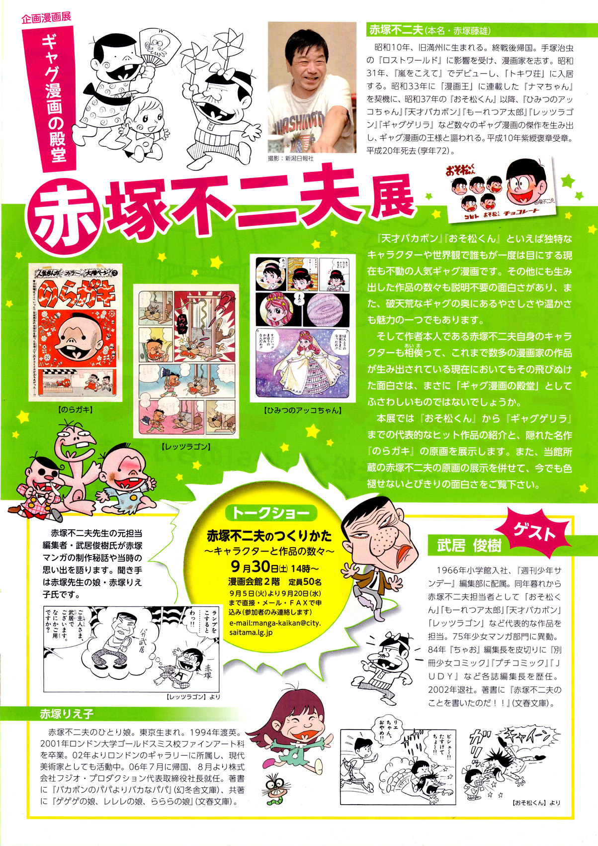 9月30日(土)には、武居俊樹さん×赤塚りえ子のトークショー