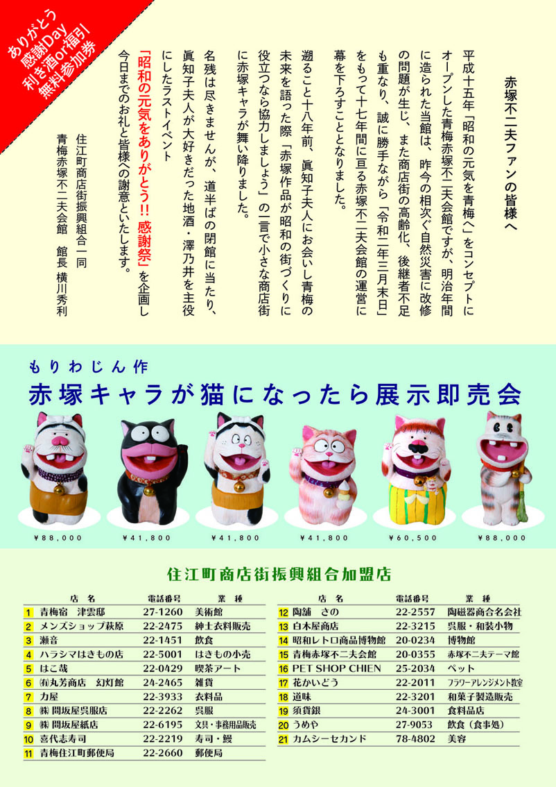 「青梅赤塚不二夫会館」で「昭和の元気をありがとう!!感謝祭」を開催!