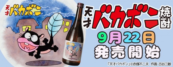 古谷三敏先生の描き下ろしラベルによる『天才バカボン』焼酎が発売!