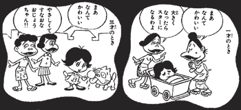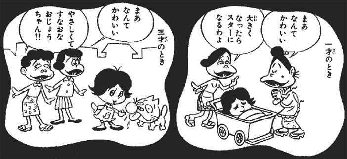 1~3歳のへんな子ちゃんは、お目々もパッチリのかわいいご近所のアイドル。誰もが認めるやさしくて素直な子が、将来とんでもない「へんな子」になるなんて、この頃の姿からは想像できません。