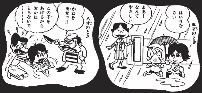 すくすく育ったへんな子ちゃん。5歳にしてひとへの思いやりを見せる出来すぎのやさしさを発揮しています。転機は、へんな子ちゃんが8歳のときに突然やってきます。まさか、泥棒に母が!!