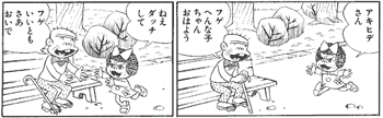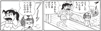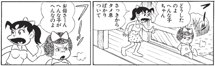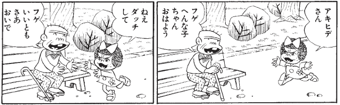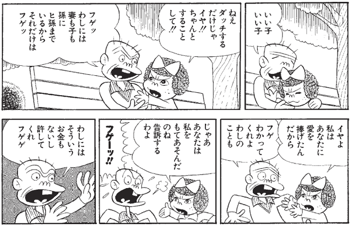 悪い予感はみごと的中。どうやらふたりは、年齢差を超えて愛しあっている様子です。恋に積極的なへんな子ちゃんにおじいさんもタジタジ。恋は盲目といいますが、へんな子ちゃんも例外ではないようです。