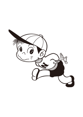 Nのイニシャルのセーターを着た生意気な男の子・ナマ太郎のナマちゃん。のちの連載のきっかけとなった読み切り版のナマちゃんはお顔がすこし違っています(比較してみてください)。