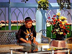 徹子さんは、いつ会っても精力的でとってもキレイ。ボクが頭にケガをしたを話したら「まー、それは大変だったわねー」、看護婦ちゃんがどんなに美しいかってコトを話すと「まー、そーなのー?それはいいわねー」、点字の本を出したコトを言えば「ただの酔っぱらいじゃないわねー」と…。やっぱり古くからの友だちってイイもんだな。なんだかテレビの収録っていうよりも、ホントウに徹子さんの部屋に遊びに行ったみたいにリラックスムードで、ボクは大変楽しかったのだ。