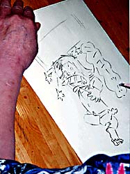 授賞式が終わったらパーティ。藤子不二雄(A)ことアビちゃんが来ていた。いつ会っても嬉しいな、少年時代からの仲間ってのはさ。それで、気持ちも話題も少年時代のコトに戻っちゃうから不思議だよー。アビちゃんのお姉さんの松野さんもいらしていた。松野さんは、ボク達がトキワ荘にいた時代から、ずーっとお話になってるの。ごはんを食べさせてもらったり、話しを聞いてもらったり…とっても優しくしてもらったんだよ。