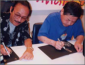 ぼくの展覧会「これでいいのだ ! 赤塚不二夫展」が高松で開催されることになって、サイン会のためにやってきたのだ。それにしても暑い暑い。サイン会は盛況。限定100人にサラサラ~っとサインをして、パチパチっと写真を撮られたりして、沢山の人に「頑張ってください」なんか言われて、ヘトヘトになってしまった。けれども、こうやって足を運んでくれるファンの人たちはホントウにありがたい。それに、なんと言っても、ココは美人が多いのだ。女性を見る目が確かなおれが言うんだから間違いないのだ。これはきっと、讃岐うどんのおかげではないか?と思うんだけれども。