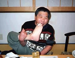 この前なんか、二次会だっていうのに40人くらい人が来ちゃって、机をズラリーっと囲んで呑んだですねー。でもね、なんだか良くわかんないんだよ。気がつくとオレの隣に知らない人が座って酒呑んでいるんだよ。これには参ったよ。話し、合わないよー。こう見えてもボクは人見知りするんですから…。後から北見ちゃんに「知らない人、よこすなよー。」って言っておいたんだけどさ。