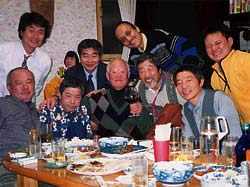 毎年恒例の新年会のお流れでフジオプロに集まったのだ。…と言っても、これはウチの新年会ではないのだ。以前ウチのスタッフだった北見ちゃん(北見けんいちさん/「釣バカ」でご存知ですよね。)の新年会なのだ。北見ちゃんは毎年毎年飽きもせず、何故だかウチのすぐソバの旅館「山楽」で百人単位の人が集まる新年会をやっているんだ。
