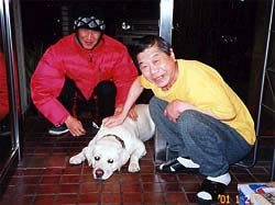 ボクは、きょうが初体面だったんだけれど、とっても大人しくって利口な犬なんだなー。なんでも盲導犬とかになる種類らしいぞ。いっぺんで仲良しになっちゃったよ。
