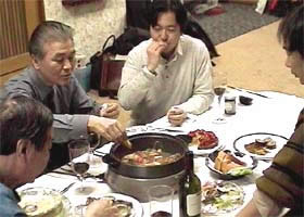 しかし、ここでひるんでは男がすたる。少なくともオレは「編集長」だしな。「おい、誰か先に喰えよ」編集長はエライのだ。だからお毒見役が食べてからでないとマズイのだ。「うまいモンばっかりを入れたんだから、マズイ訳ないだろ?うまそうじゃないか。」オレはワインをグビグヒあおる。
