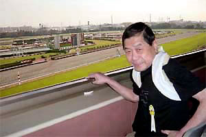 競馬場からコニャニャチハ!師走の風は冷たいですが、ボクはこうしてぬくいところで競馬をやっています。仕事仲間で友人のスポニチのヤマグチくんが、招待してくれるモンだから、すっかりハマっちゃって毎年この時期にスポニチ賞ステイヤーズステークスにきているんだ。ボクは別に競馬ファンではないけれど、ヤマグチくんのおかげでスタンド最上階のゴンドラ席に入ることができて、ココが気にいっちゃった。なんといっても眺めがイイし、お料理も食べ放題、おチャケも飲み放題と天国のようなところ。