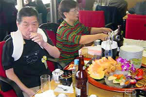 この人がボクたちを招待してくれたヤマグチくん。「ヤマグチくん、それはオレのボトルだからこっちへちょうだいよ」「真知子さ~ん、コレ先生に渡していいの~?」「お・おい!ちょっと、真知子に聞くなよ」