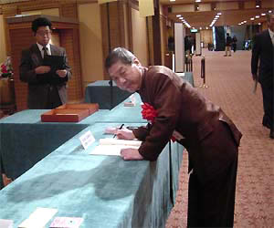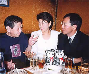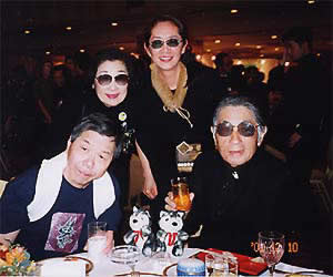 パーティ会場で藤子不二雄Aことアビちゃんに会いました。さんざん話をした後で「ところで赤塚氏、そのファションはなに?」だって。後ろにいるはアビちゃんとずーっと一緒に仕事をしている松野さん。実はアビちゃんのお姉さんです。