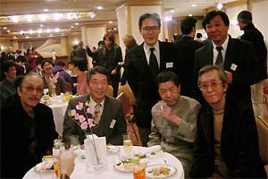 小学館のパーティ会場でかつての仲間とかつての担当者が顔を揃えた。右から元アシ高井の研ちゃん、オレ、小学館の武居記者、元アシ安達勉、上は小学館の赤岡さんと三宅さん。みんな年とったな~。
