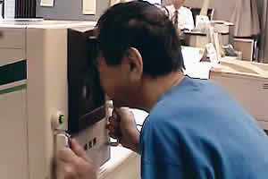 不安をかかえながらも、真知子さんに連れられて、午前中から新宿警察署へいきました。手続きの後、視力検査です。係りのおまわりさんが「はい、これは?」「上です」「これ」「右!」「はい、じゃこれ」「うーん…」3コ目が見えません。「左!!」「違うんだよな~…もう一回あとで受けてみてください」…と、休みながらり返すことなんと3回。みごとダメでした。
