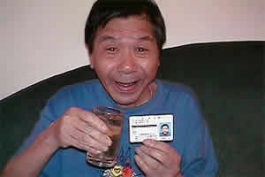 ヤッタゾ、見てくれ!丸2日禁酒の後、日曜日にみごと合格!府中まで往復タクシ ーを使っての高い免許となりました。右手を見てくれ、さあ!コレで飲めるゾ!