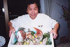そして、今年も届きました、親友タモリからのタイ一尾。なんだかんだ言ってケ ッコー義理堅いヤツなんだよな。近所のお寿司屋白雪さんにお願いして、お刺身にしてもらいました。その量なんと50人前!これを食べるために夕方から人がきます。