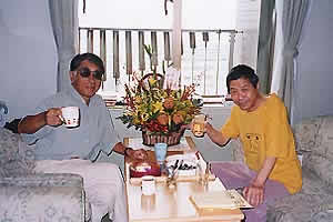 あれはもう4年前。オレが上野の森美術館で個展をやっていたときに立洋クンが訪ねてきてくれたんだ。なんでもオレのファンらしくオレのコトをちょろっと本に書いてくれたのを報告っていうか見せににきてくれたんだな。控え室で紹介されたんだけれど、弟とすっかり間違えていたオレは、いやだな~と思って、ずっとソッポ向いていたんだ。そいで、なんでヒゲの方がイヤかっていうと、ここで赤塚家のワイドショー好きが発覚するですねー。