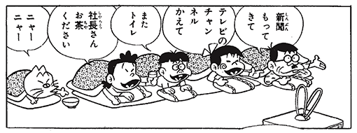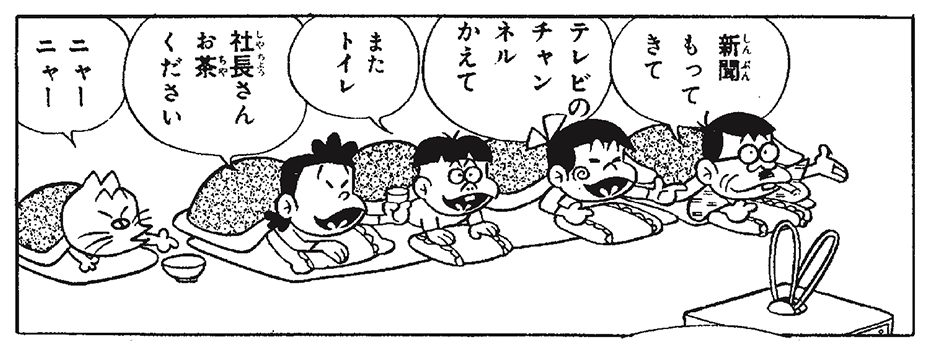 お手伝いさん、おまわりさん、先生から社長にまで。訪ねてくるひと誰にでも一家そろって頼みごとを連発。これもパパの教育?