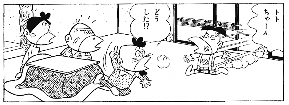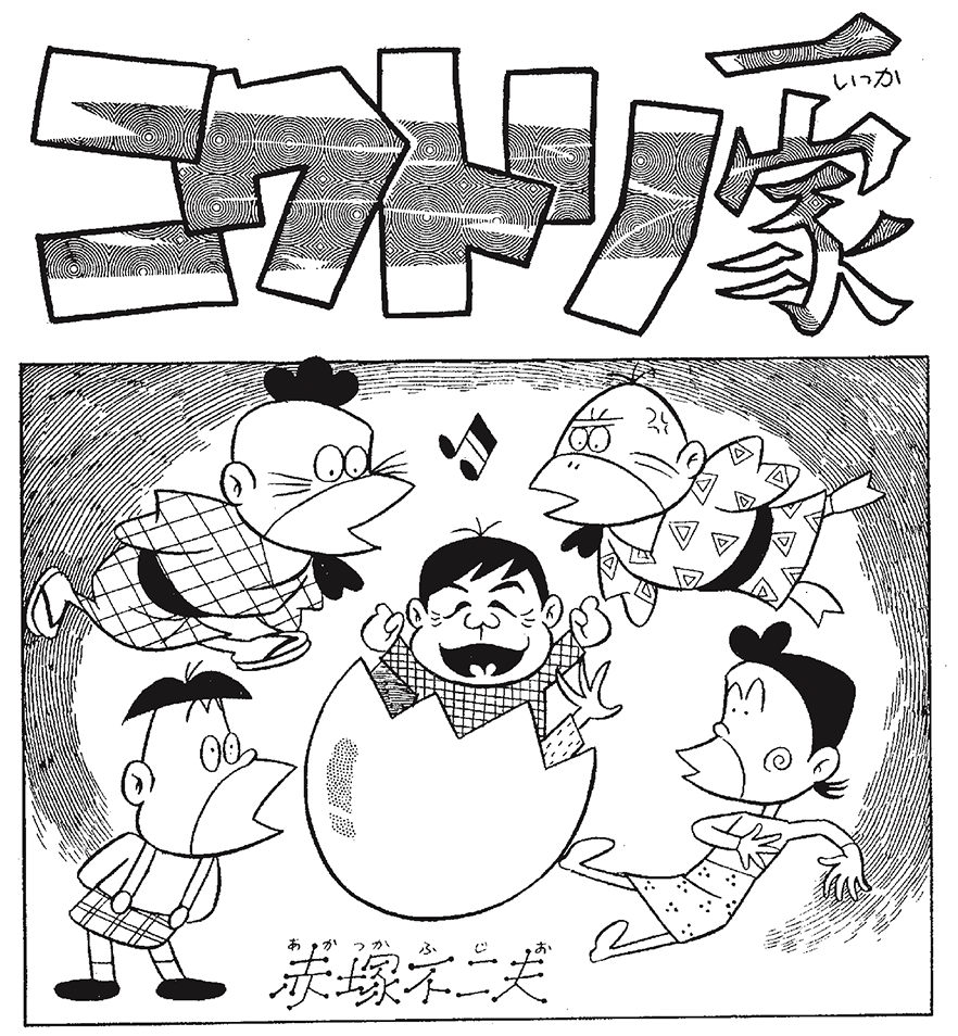 パパのコケ吉、息子のチャボ助にママのピヨ子、おじいちゃんのシャモ爺の四人がニワトリ一家。くちばしのような口にトサカがトレードマーク。