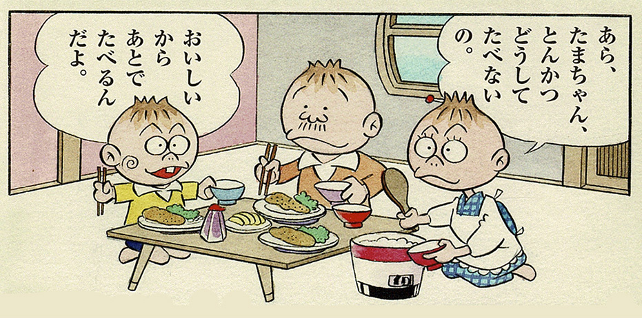 正義感あふれる息子のたまちゃんの良き理解者で頼りになるパパ。そっくりのたまねぎ頭は親子のあかし。たまちゃんのよいお手本です。