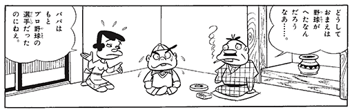 球太のパパは元プロ野球選手で野球が下手な球太を案じるやさしいパパ。超能力ボールを手に入れた球太のひみつをいつ知る?