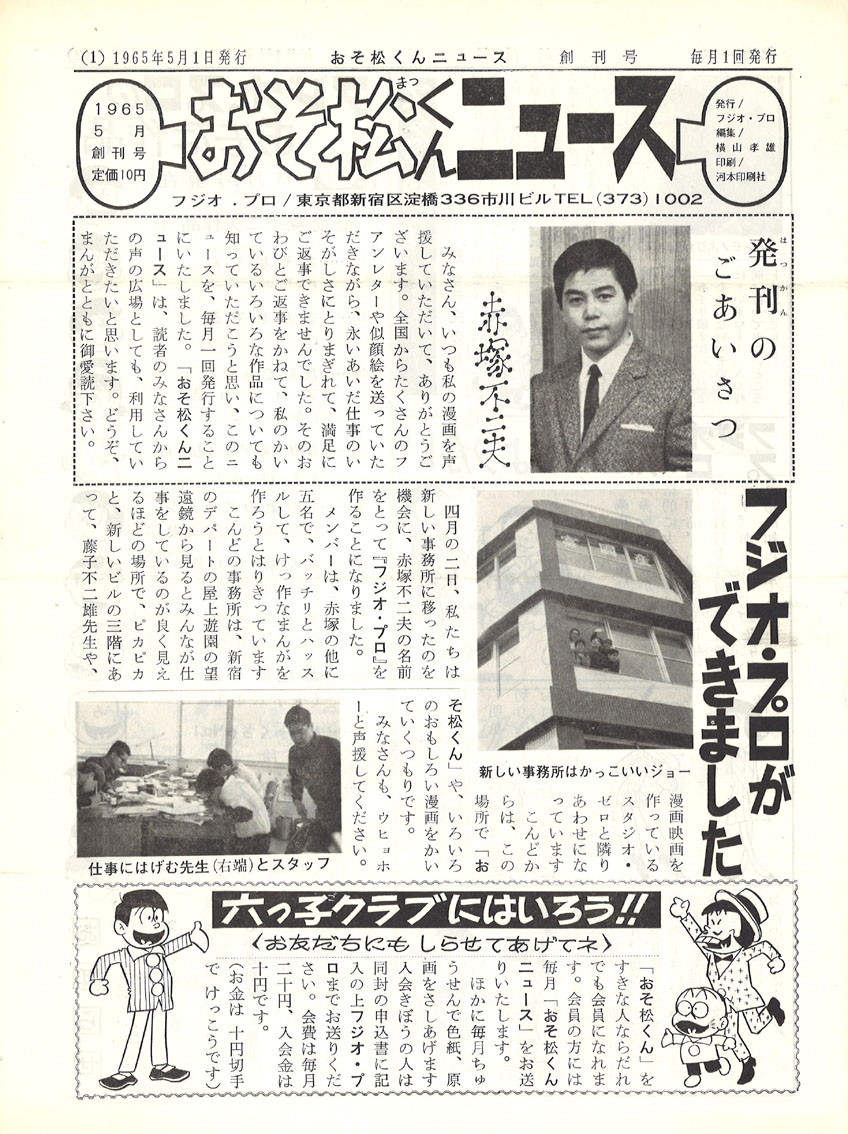 (フジオプロ発行「おそ松くんニュース」創刊号より)