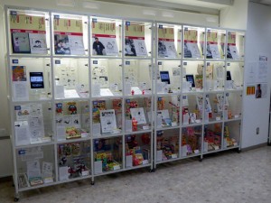 単行本や雑誌がケース内にところ狭しと並んでいます。