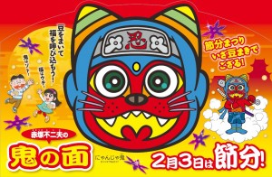 節分といえば、毎年恒例 “赤塚不二夫(フジオプロ)の鬼の面”。