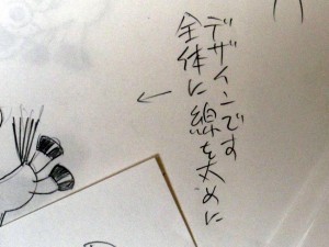 赤塚マンガの原画には、枠外に↓このようにアシスタントへの