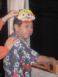(2002年「ゴール鬼」を付けて豆まきするセンセイ!)