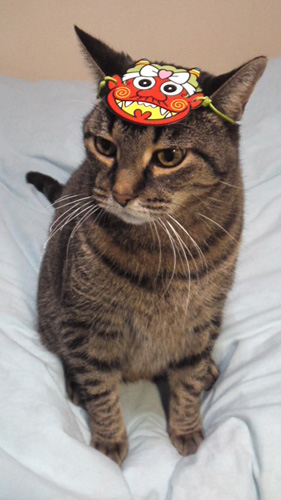 また今年も節分モデルのネコ・ベルくんがお面をかぶってくれたヨ~ン。